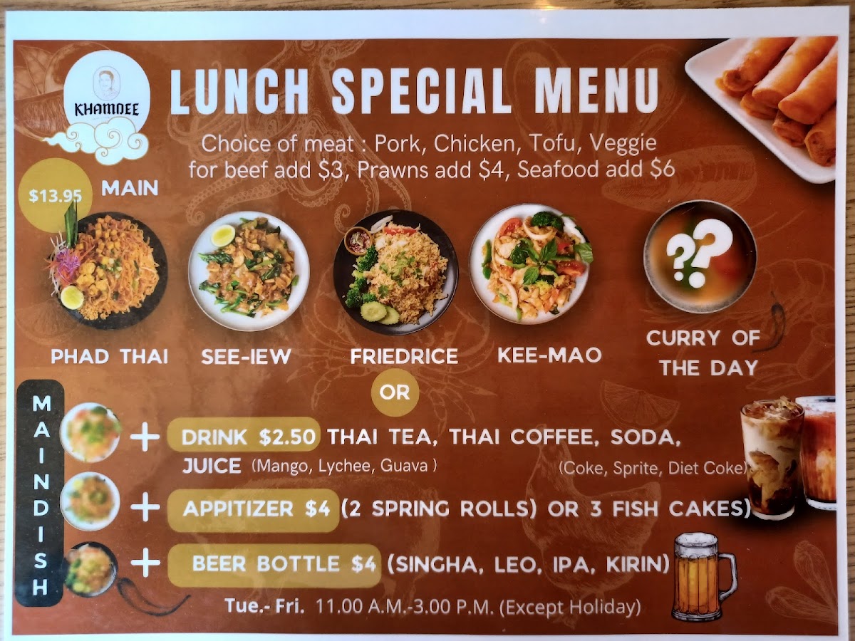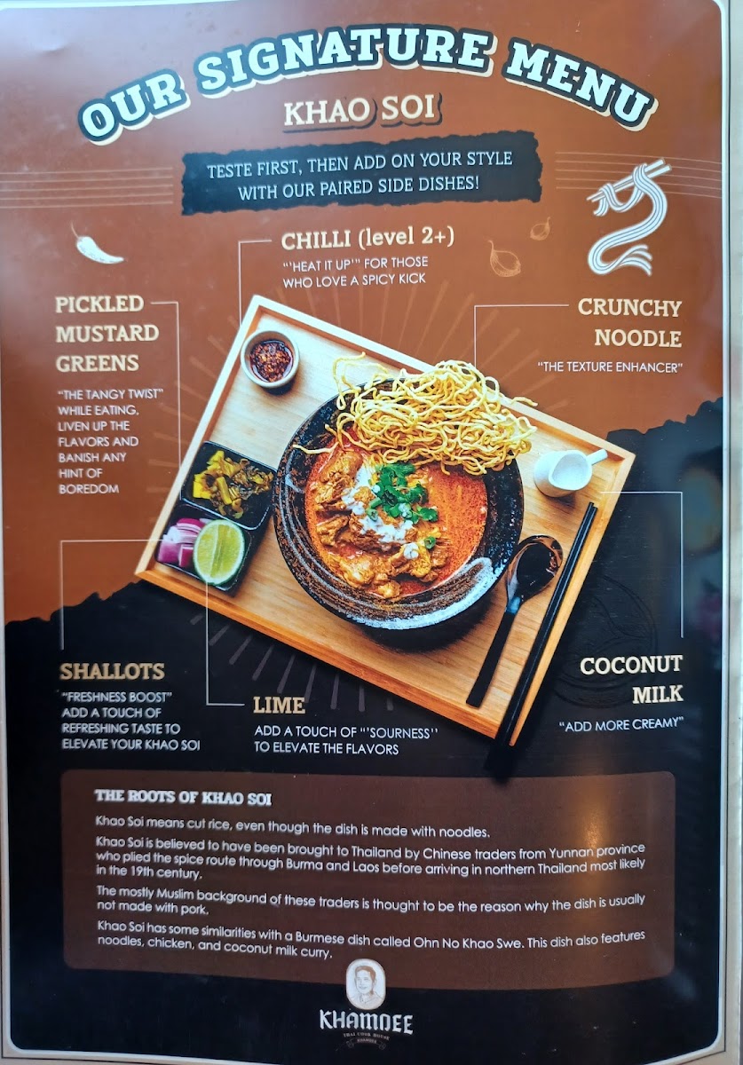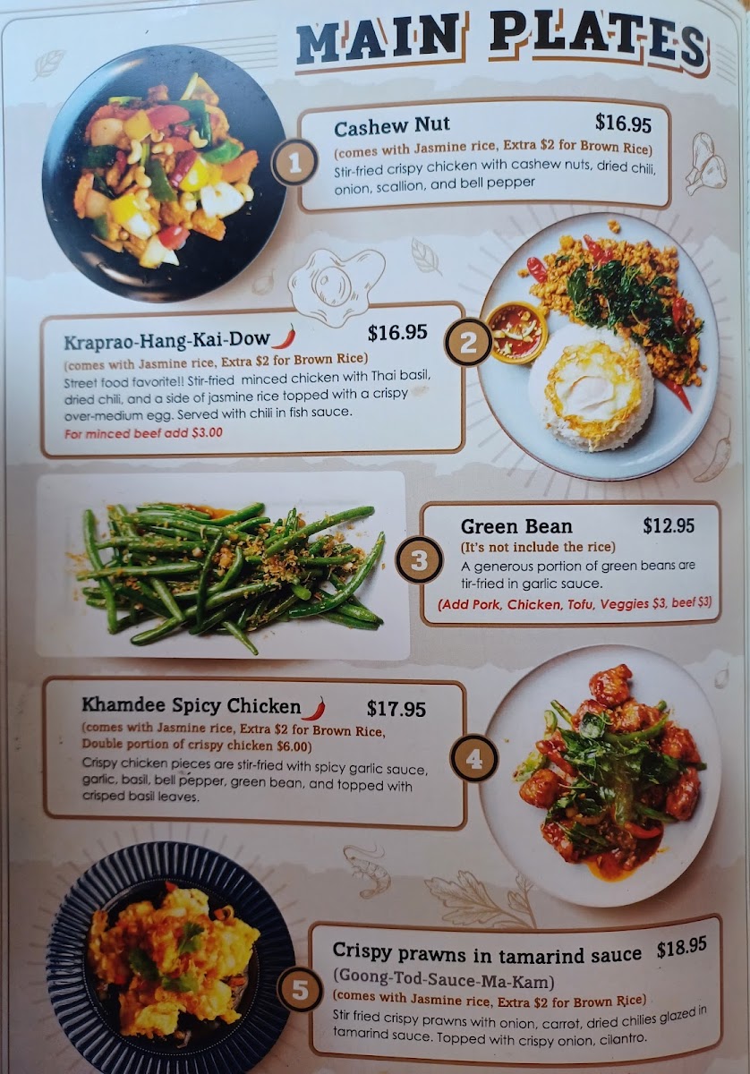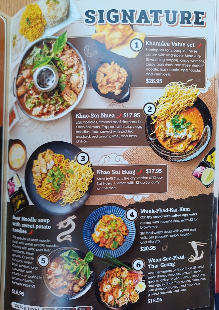 From fragrant Thailand-inspired juices like Butterfly Pea Flower Juice to refreshing beverages such as Thai Iced Coffee, your meal at Khamdee is perfectly complemented by delightful drinks. The prices are reasonable, making it a special treat for any diner looking to explore authentic Thai flavors.
