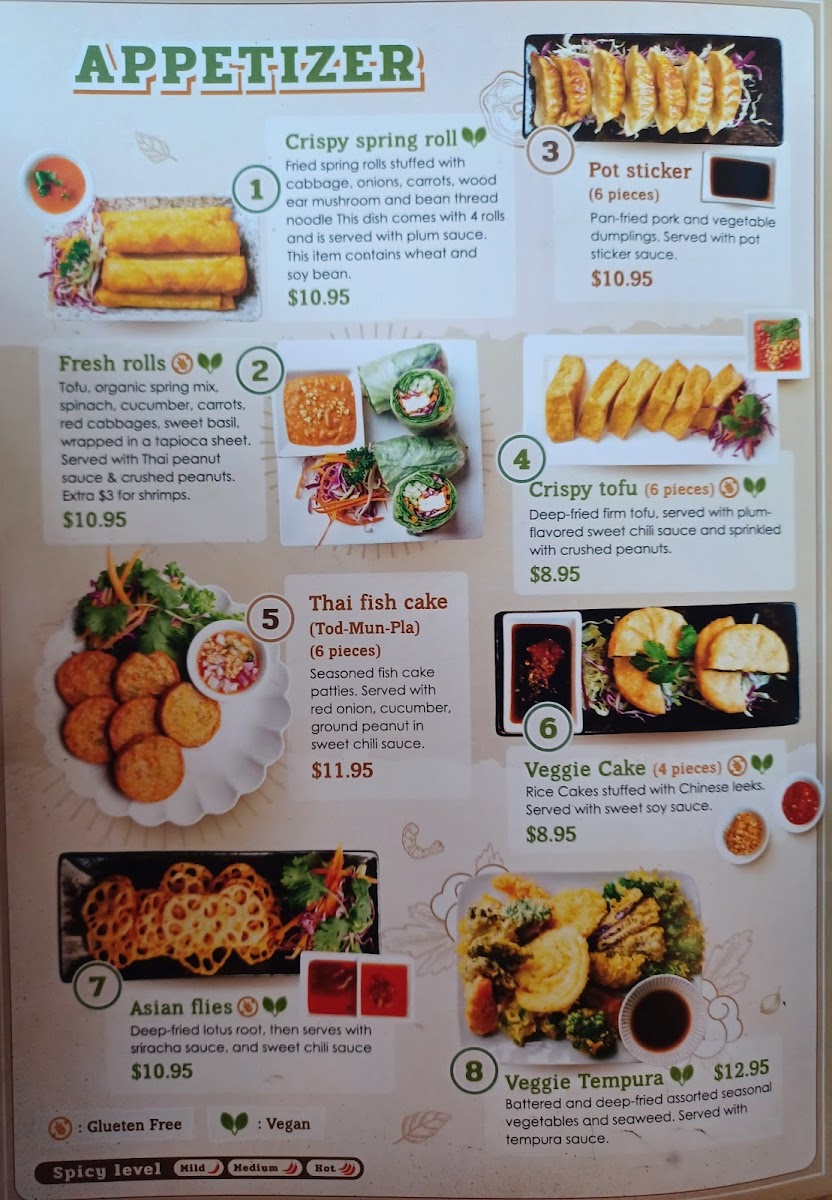 The restaurant specializes in traditional Thai cuisine, offering a diverse menu that caters to both the adventurous and classic palate. Kick-start your dining experience with the Pot Stickers, delightfully pan-fried dumplings filled with tender pork and vegetables, served with a zesty Thai ponzu sauce for that perfect balance of savory and tangy. For a touch of crispy indulgence, the Crispy Tofu is a must-try; these golden, gluten-free bites come paired with a sweet chili sauce and a sprinkle of crushed peanuts that adds delightful texture and flavor.